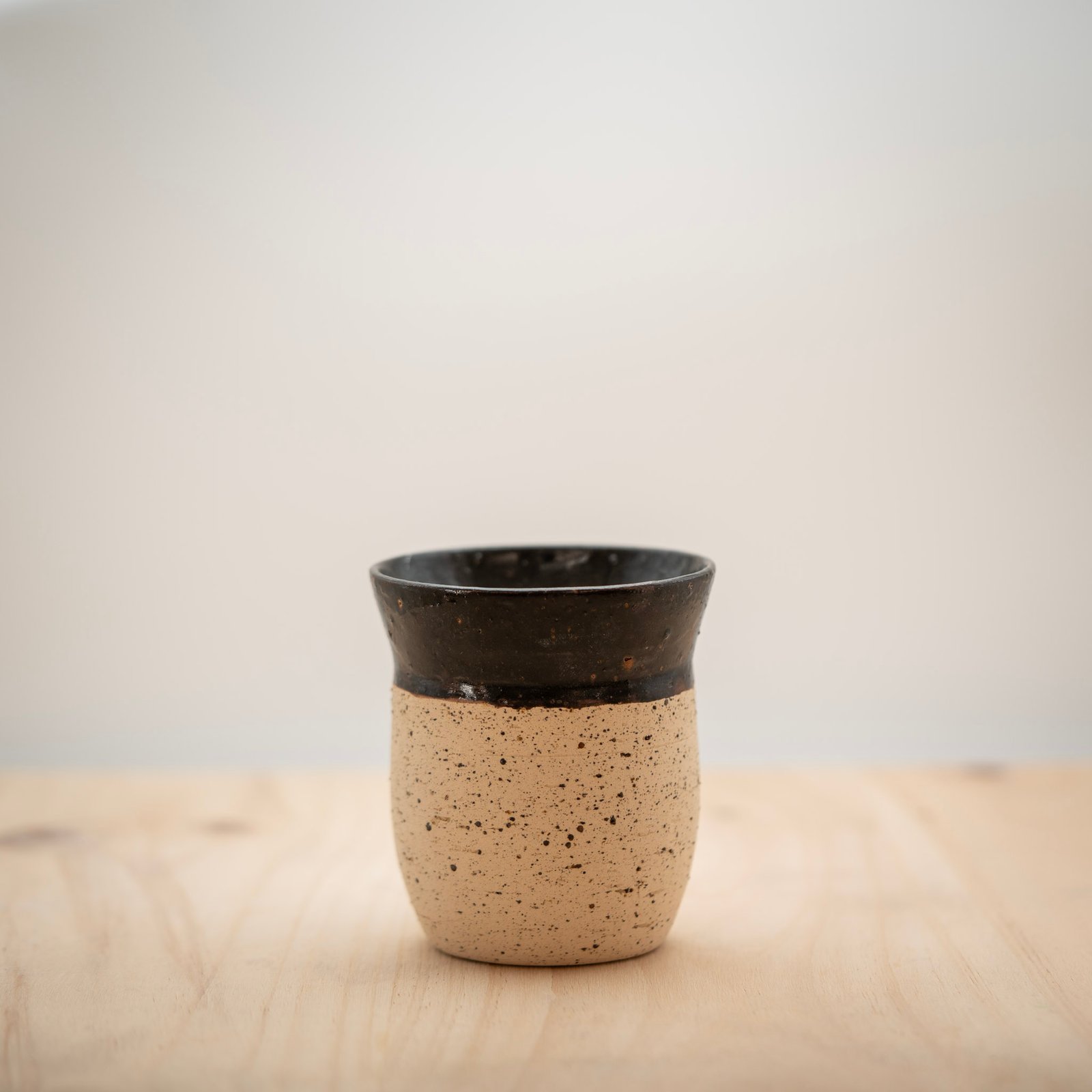 Este jarrón lo realizamos al torno con arcilla refractaria blanca moteada. Esmaltamos el interior y la parte superior con un negro brillante.
